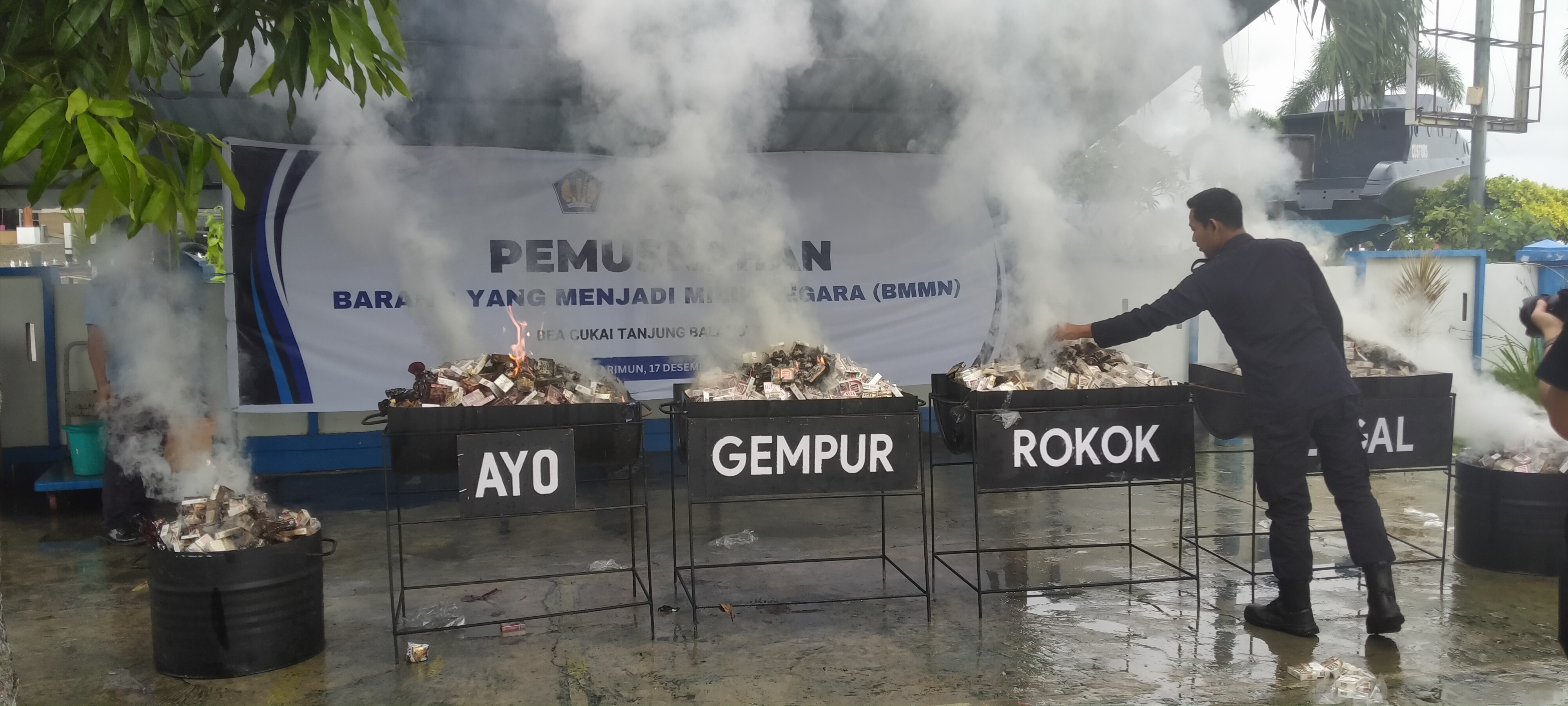Turut menghadiri pemusnahan barang yakni perwakilan pejabat dari Kantor Wilayah DJBC Kepulauan Riau, Kejaksaan Negeri Karimun, Satuan Polisi Pamong Praja Kab.Karimun, Kepolisian Resor Karimun, Datasemen Polisi Militer TNI AL Tanjung Balai Karimun, dan Kantor Sub Detasemen Polisi Militer TNI AD