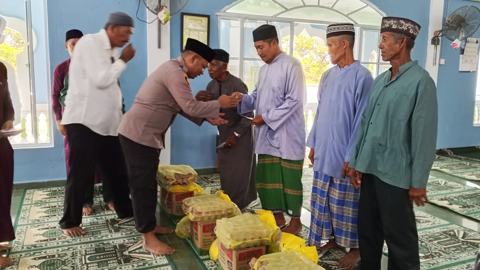 Melalui program “Jumat Berkah”, Polsek Buru membagikan 40 paket sembako pada warga Desa Tanjung Batu Kecil, Buru, Karimun pada Jumat (13/2/2026).