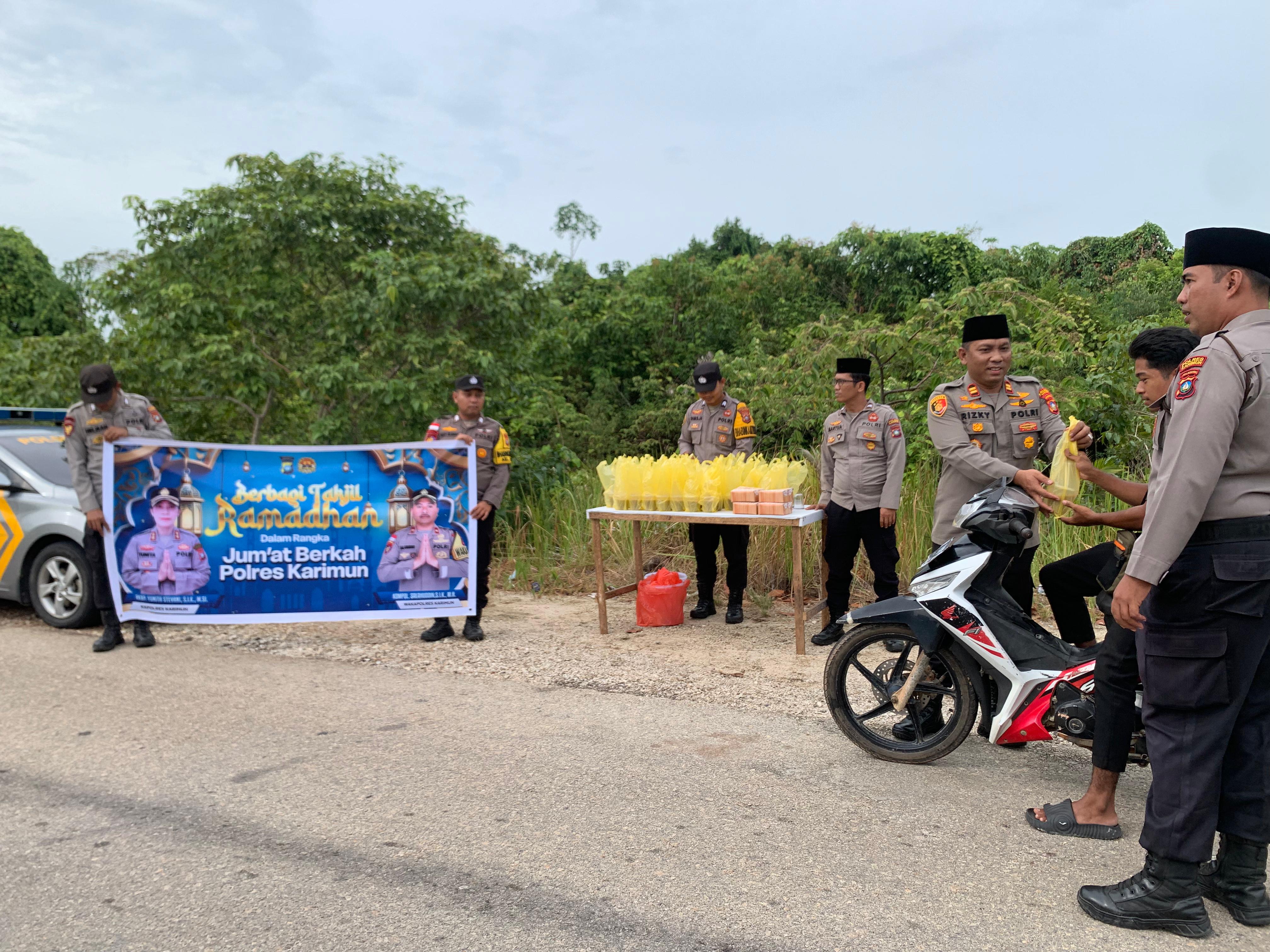 KARIMUN, kabarkarimun.co.id – Polsek Buru, Polres Karimun membagikan makanan berbuka puasa atau takjil 100 bungkus kepada masyarakat Kelurahan Lubuk Puding pada Jumat (20/2/2026) sore.