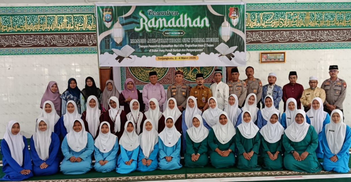 KUNDUR, kabarkarimun.co.id – Puluhan pelajar di Kundur mengikuti pesantren Ramadan yang digelar masjid At Thayyibah SPN Polda Kepri di Tanjungbatu, Senin (2/3/2026).