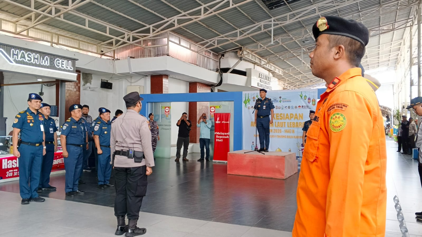 Peresmian Posko Kesiapan Angkutan Lebaran ditandai dengan apel siaga yang dipimpin Kepala KSOP Kelas I Tanjung Balai Karimun, Capt. Supendi.