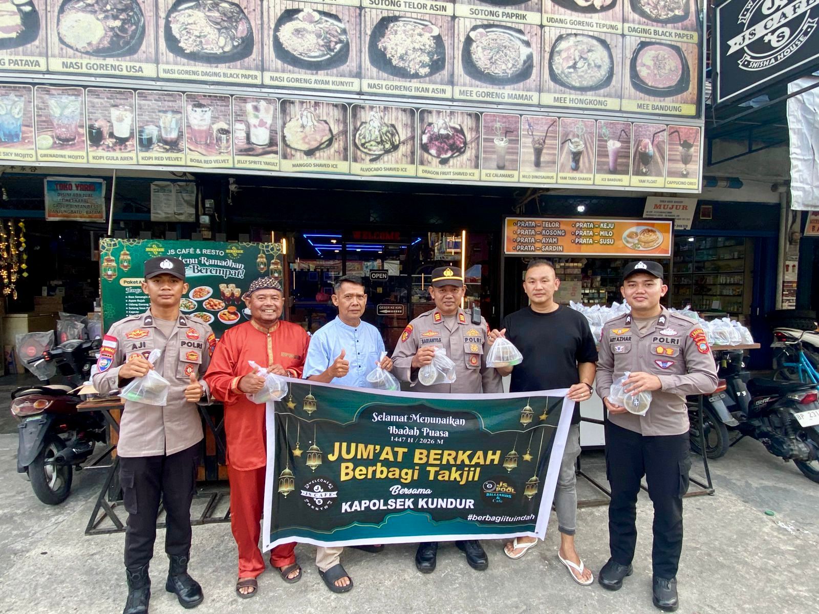 KUNDUR, kabarkarimun.co.id – JS Cafe bersama Kapolsek Kundur berbagi takjil Ramadan, Jumat (13/3/2026).