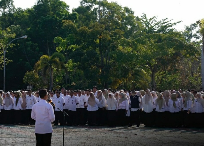 Apel ASN pasca-libur panjang Hari Raya Idul Fitri 2026. Ia menekankan pentingnya momentum pasca-Ramadan untuk membangkitkan kembali semangat patriotisme, profesionalisme, dan optimisme dalam membangun daerah.