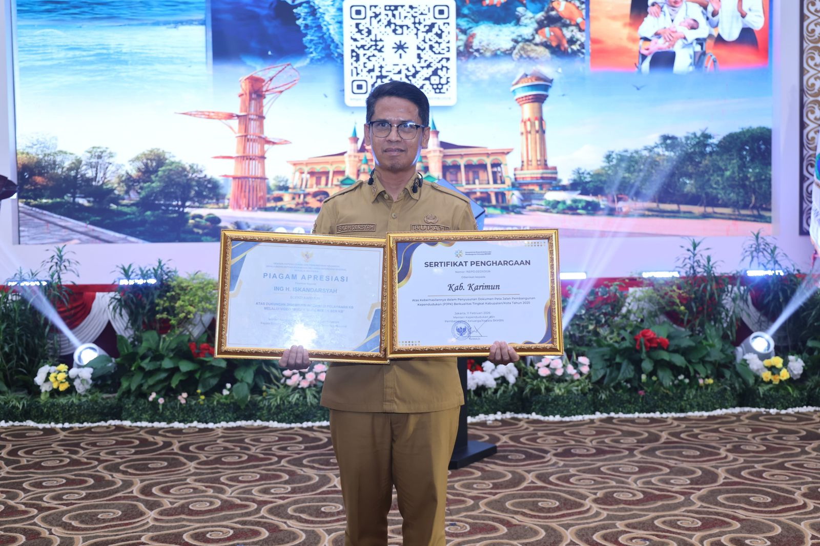 1. Penghargaan kepada Pemerintah Kabupaten Karimun atas keberhasilan menyusun Dokumen Peta Jalan Pembangunan Kependudukan (PJPK) Berkualitas tingkat kabupaten/kota Tahun 2025.